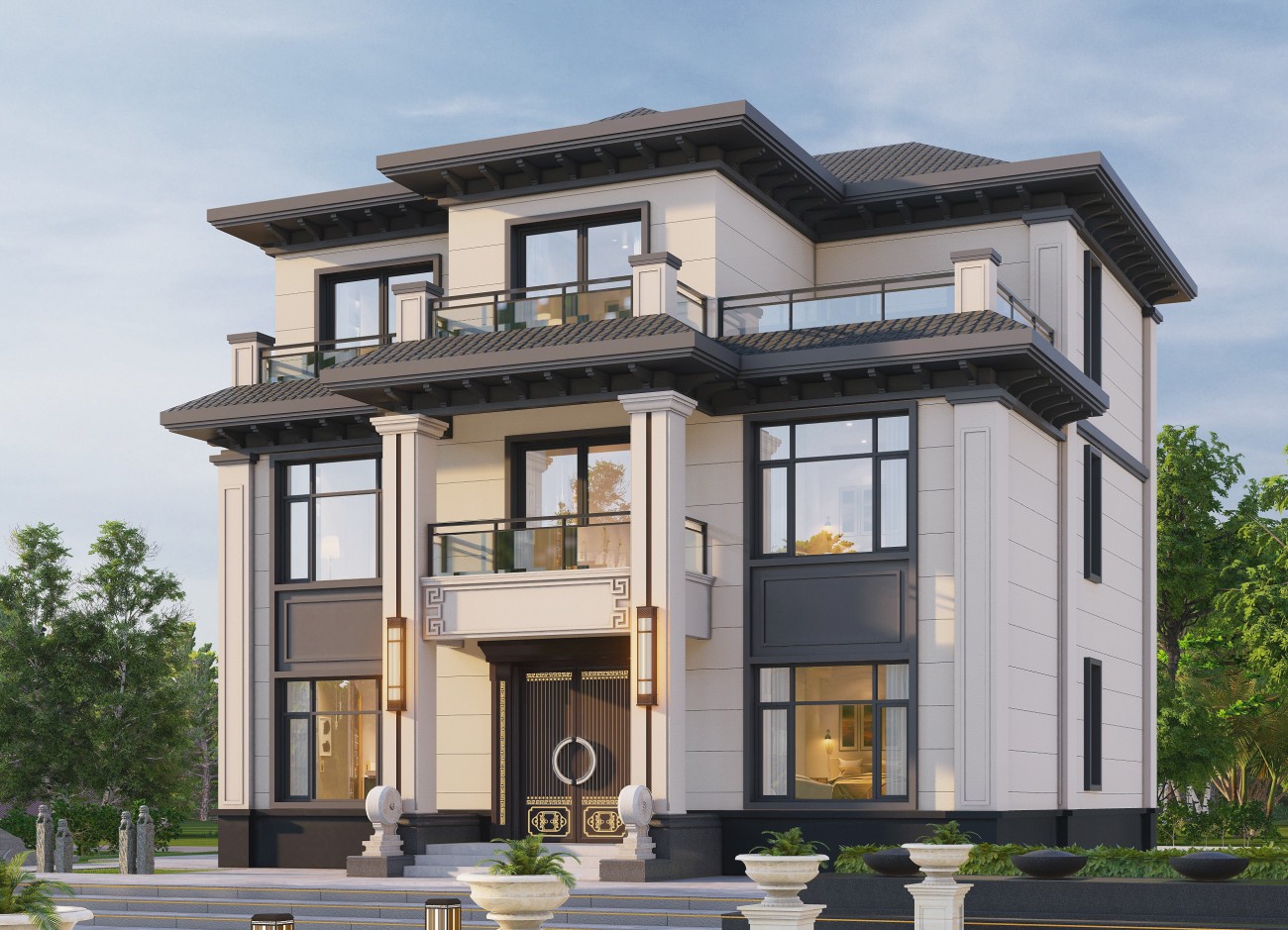 海东17 三层新中式(10x12米)-【易设计】